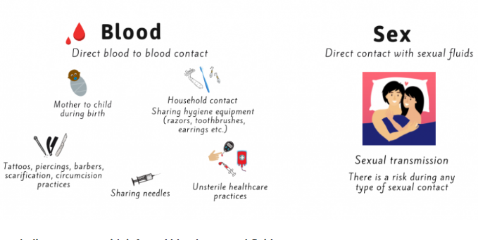 - Direct contact with blood or open sore of someone with hepatitis B.